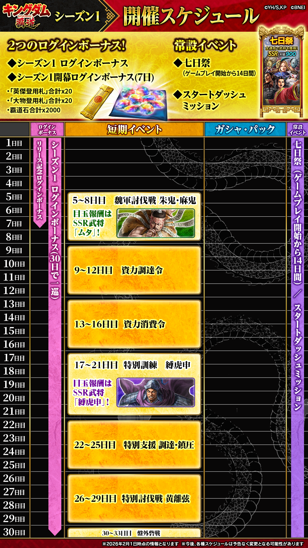 シーズン1開催中のサーバーでプレイ中の皆さまに向けて、シーズン1期間中のイベントスケジュールをまとめました。